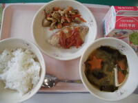牛乳 かてめし 冬瓜の味噌汁 あじの南蛮漬け