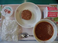 6月1日 …ごはん 牛乳 トマトとレタスのスープ ハンバーグオニオンソース