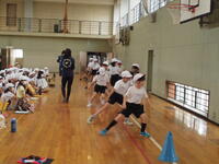 体育館では、中学年が、幅跳び・上体起こし・反復横跳びなどに取り組んでいました。