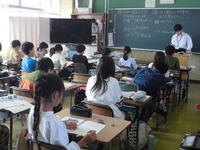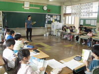 1年生、国語「くじらぐも」の学習。元気いっぱいに手を挙げる姿が見られました。