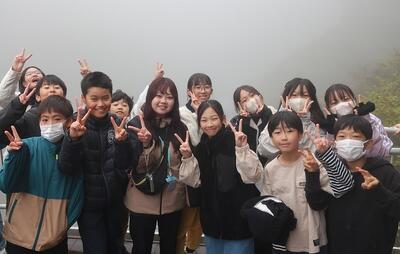 周りが霧のため、児童も今までに見れない光景に出会えたようで、興奮していました。