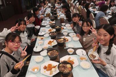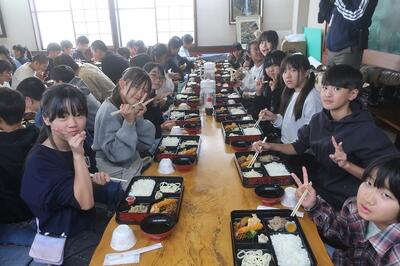 お弁当には、すき焼きやうどん、焼きそば、エビフライなど児童が好きな食べ物が入っていたため、