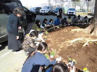 木々の芽が膨らんで、校庭にはふきのとう、いぬのふぐり、水仙がさいています。