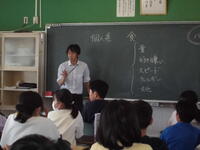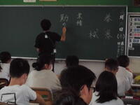 宿題の漢字練習を見て、教員がよくある間違いを子供たちに伝えていました。