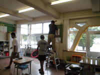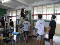 午後には、教室の扇風機の取り付けに多くの方々が来てくださいました。