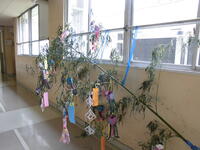 くすのき学級や1年生の教室前には、七夕飾りが飾られています。