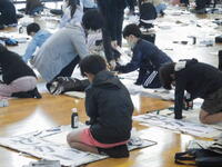今日はTSSの皆さんに、6年生が書きぞめの指導をいただきました。