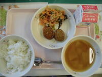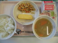ごはん 牛乳 たまねぎの味噌汁 鶏の照り焼き わかめのサラダ