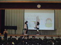 健康のために清潔にすることは大事…。同じく3年生では、実習生による保健の学習も行われていました。