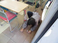 図工の学習の後に、床に散らばったごみをしっかり掃除している2年生の姿がありました。
